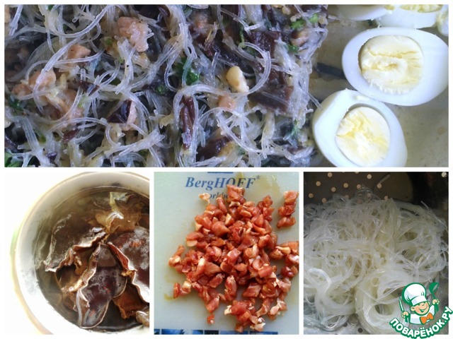 | Мужу нравятся эти чудные пирожки с необычной начинкой: свинина, черный древесный гриб, рисовая лапша, половинка куриного яйца. Одна такая штучка - полноценный завтрак. Пришлось порыться, и вот что получилось. Конечно, может что-то не так, но секреты мне никто не хотел рассказать, ответ один: "Много знать хочешь", оно и понятно, люди этим зарабатывают. |