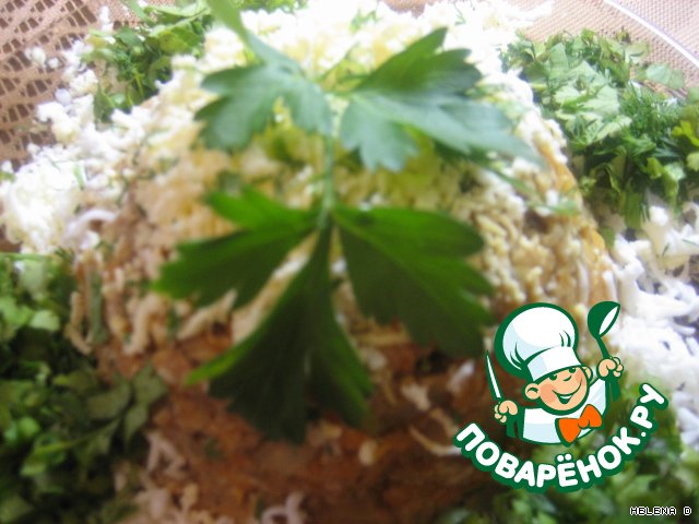 Смешиваем все ингредиенты (зелень, яйца, печень, лук, морковь), добавляем майонез и приправу. Оформляем и .....вкушаем!!!