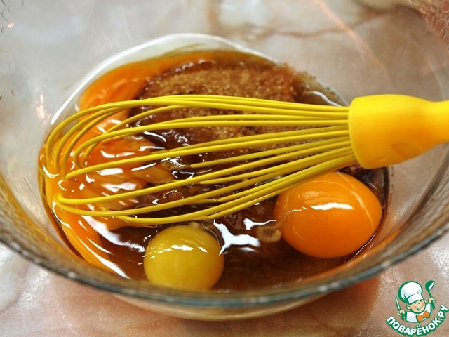 В миске слегка взбить яйца с ванильным сахаром (или корицей), нашим тростниковым сахаром (ТМ "Мистраль"), он придаст приятный карамельный вкус нашей десертной запеканке. Взбивать пока сахар не растворится полностью.