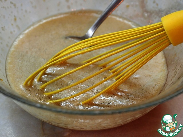 Добавить к смеси слегка подогретое молоко. Размешать.