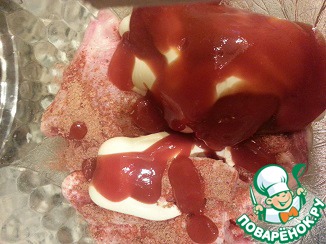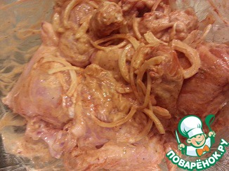 В курочку добавляю соль, паприку, майонез, кетчуп, чеснок, соевый соус детское пюре, его я готовлю сама, но можно и купить. Я рекомендую покупать "Фруто няня" яблочную без сливок. Но как я и писала, можно заменить на мёд, только его кладём в последнюю очередь, когда курочка промаринуется.