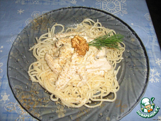 Добавляем сливки. Как сливки загустеют, добавляем молотый грецкий орех.