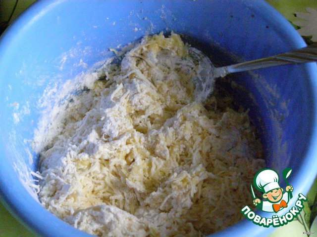 Размягчённое сливочное масло соединить с мукой (просеянной), добавьте тёртый сыр, молоко, взбитое яйцо одно, другим смажьте перед запеканием, добавьте щепотку соды или разрыхрытель, соль и специи по вкусу.
