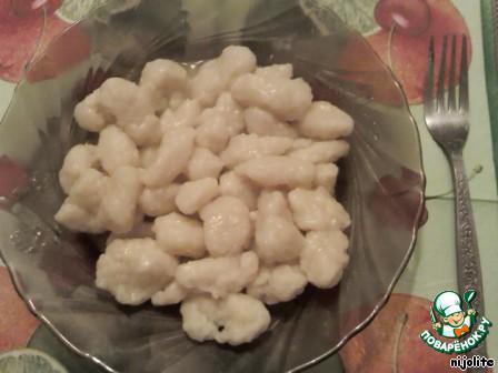 Если муку замесить пополам с творогом, получатся галушки с творогом или ленивые вареники!