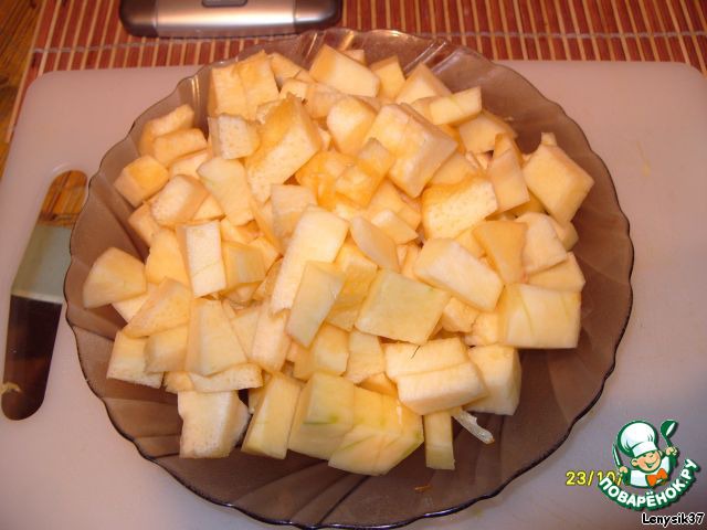 Тыкву очистить от семян и кожуры. Нарезать кубиками.