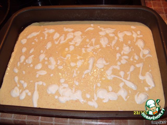 Выложить суфле. Разровнять. Смазать верх сметаной или желтком (по желанию).