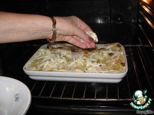 Когда каннеллони готовы, посыпаю сыром и ставлю еще на пару минут для того чтобы сыр расплавился.