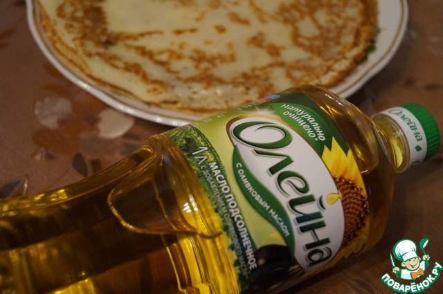 На растительном масле Олейна испеките блинчики по любому Вашему рецепту. У меня блины на молоке бездрожжевые.