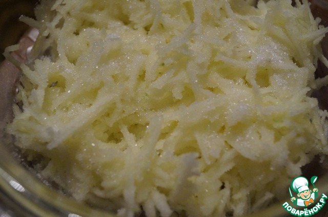 Натрите яблоки на крупной терке, посыпьте сахаром и отправьте в микроволновую печь на 10-15 минут, пока они не станут мягкими.