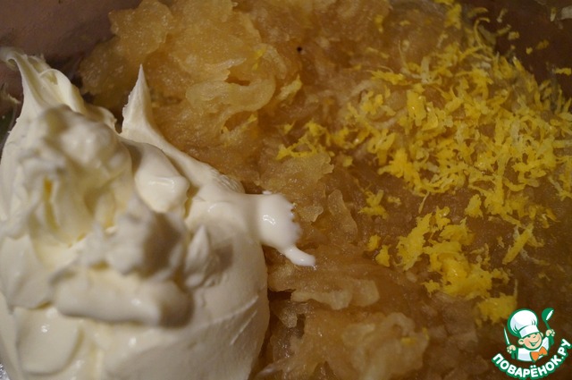 Когда яблочки остынут, добавьте к ним цедру лимона и сыр маскорпоне. Все взбейте миксером.