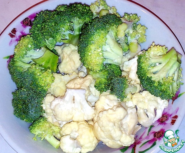 Разобрала капусту на соцветия и положила в подсоленную воду. Варила три минуты и слила воду.