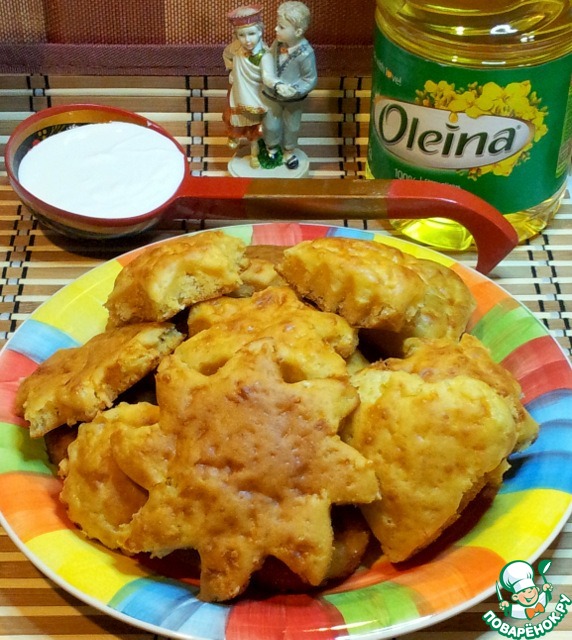 | На масленичной неделе, какие только не придумаешь блины и оладьи, чтобы они понравились не только взрослым, но и детям. Эти оладьи предназначались соседским внучкам. Чтобы заинтересовать девочек и вызвать у них аппетит, выпекала их в духовке, в формочках для печенья. |