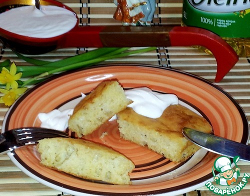 Сырные оладьи все ели с густой сметаной. Оладьи из этого теста так же можно печь и на сковороде.