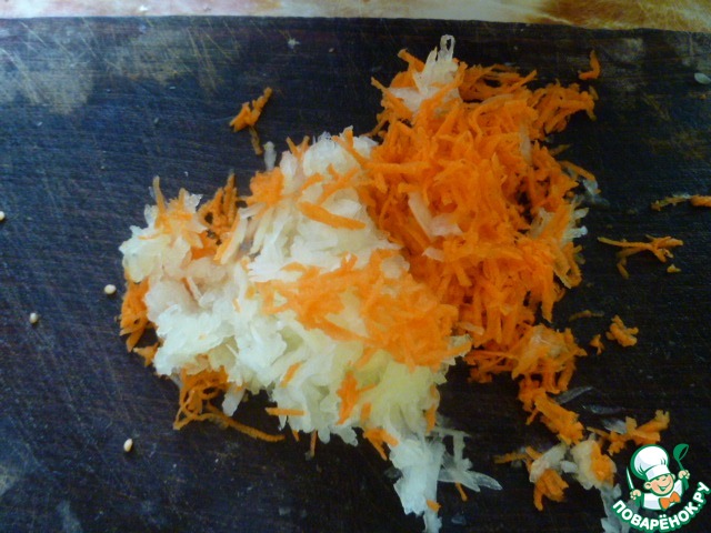 Очистить лук и морковь, на тереть на крупной терке.