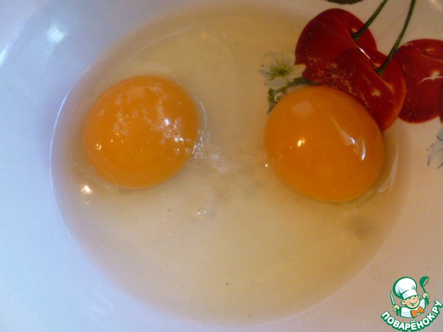 2 яйца взбить с небольшой щепоткой соли