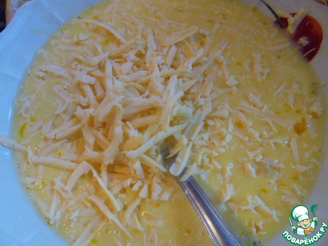 Добавить тертый сыр, перемешиваем.