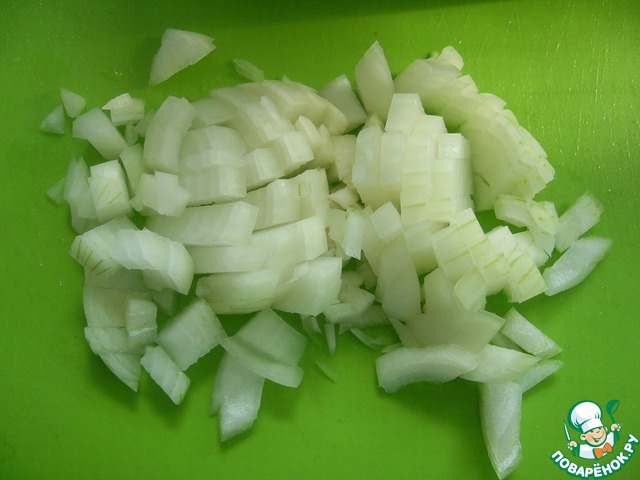 Биточки из рисовых хлопьев с жареным луком и плавленным сыром