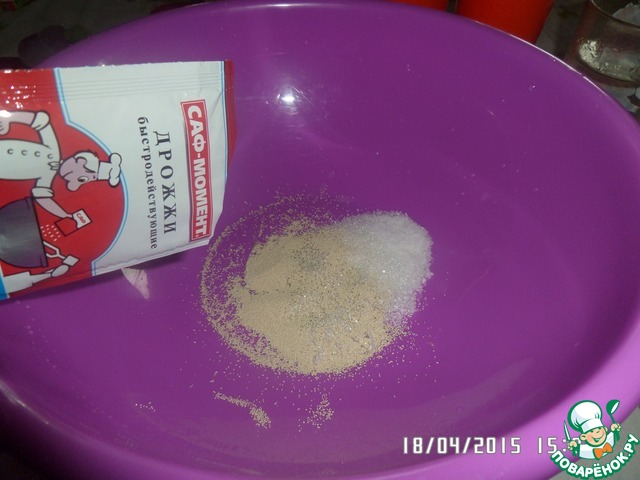 Наше тесто по прошествии часа. Делим на 2 части, так удобнее раскатывать.
