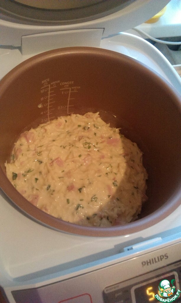 Рецепт "Пирог с сыром и колбасой в мультиварке":