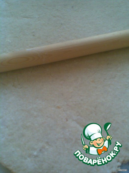 Раскатать его в пласт, толщиной примерно 0,7 мм.