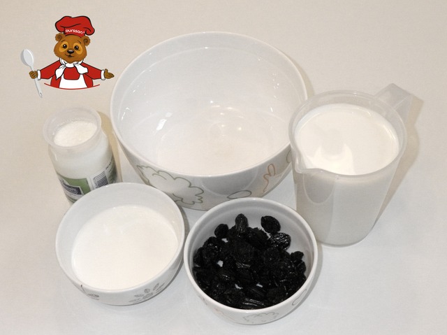 1. Смешайте в глубокой миске при помощи венчика молоко, сливки и йогурт.