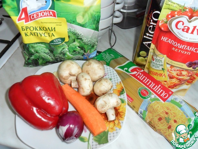 | Яркое и аппетитное блюдо со вкусом овощей и специй. Рецепт подглядела на коробке со спагетти и это блюдо стало частым гостем на нашем столе. Попробуйте и оцените этот вкус. |