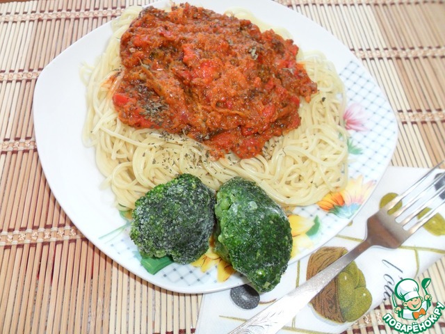 Сохраняем его горячим (я в мультиварке на режиме поддержание тепла). Спагетти отвариваем, перекладываем в сковороду и хорошо смешиваем с соусом. Приятного аппетита!