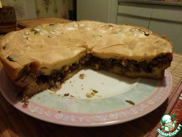 Второй половиной теста накрываем нашу начинку. Разогреваем микроволновую печь до 180 градусов, ставим наш пирог в режиме конвекция на 40 минут. Можно после поставить минут на 5-10 добавочно (в зависимости от вашей СВЧ)