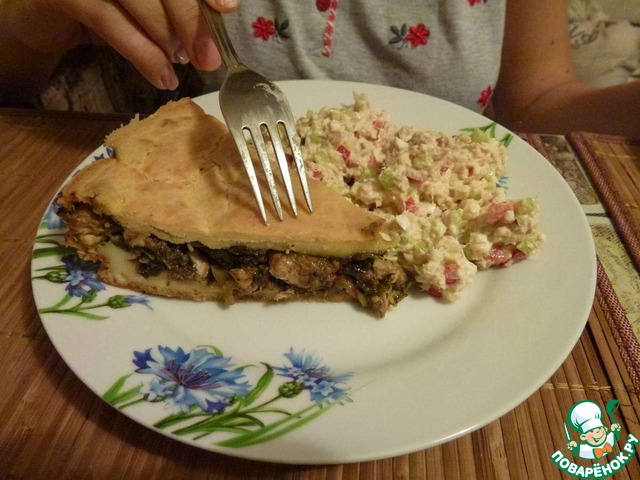 | Решил выложить свой эксперимент. Однажды в интернете нашёл рецепт "Мягкого теста без дрожжей", как -то так звучало название. Решил добавить туда свою начинку и выложить на суд зрителей. :))) Пирог с куриным филе и баклажанами. Родным понравился и мне тоже. Можно приготовить на ужин, а если останется то и позавтракать. Может многие так делают, но я сделал впервые и решил поделиться своим рецептом. |