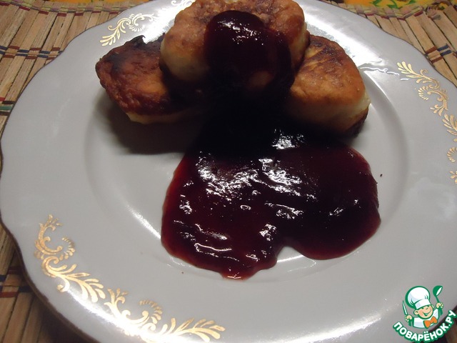 Готовые оладушки полить брусничным джемом, медом или сметаной.