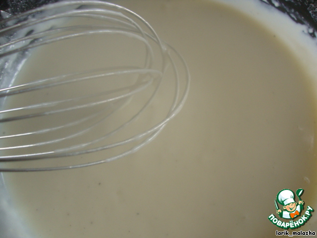 В смесь муки и масла добавляем по вкусу соль и перец, вливаем горячее молоко.