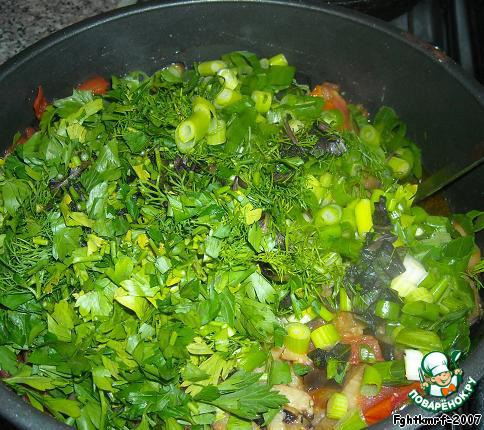Затем высыпаем на овощи зелень