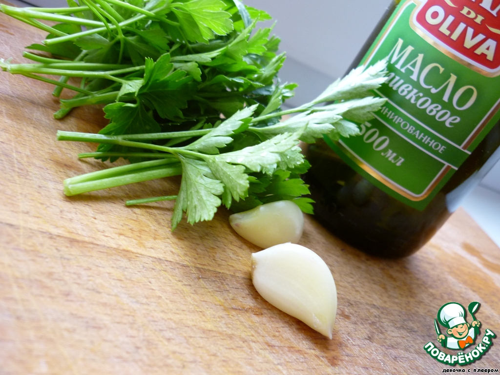 Смешать измельченную петрушку, чеснок и растительное масло.