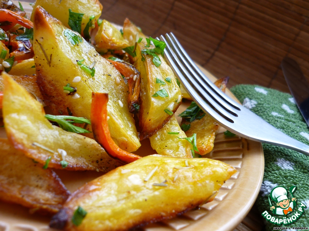 | Как же я люблю картошку!!!!! В любых ее проявлениях!!! Этот получился ну очень ароматным, красиво золотистым и замечательно хрустящим!!! Одним словом - чудо!!! |