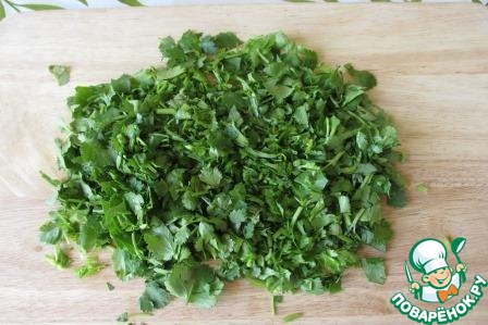 Кинзы нужно много, у меня как раз стограммовый пучок.