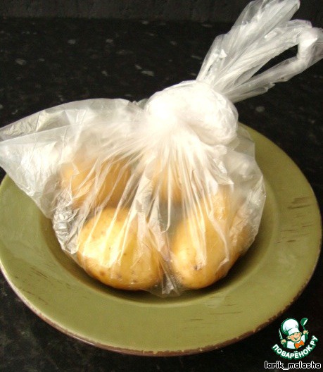 Я для этого использую микроволновку. Кладу помытый картофель в целлофановый пакет, прокалываю его в нескольких местах и ставлю в тарелку. Отправляю в микроволновку на максимальную мощность минут на 6 (если картофель небольшой) и 8-9 (если крупный картофель). Немного охладить, вынуть из пакета и использовать по надобности.