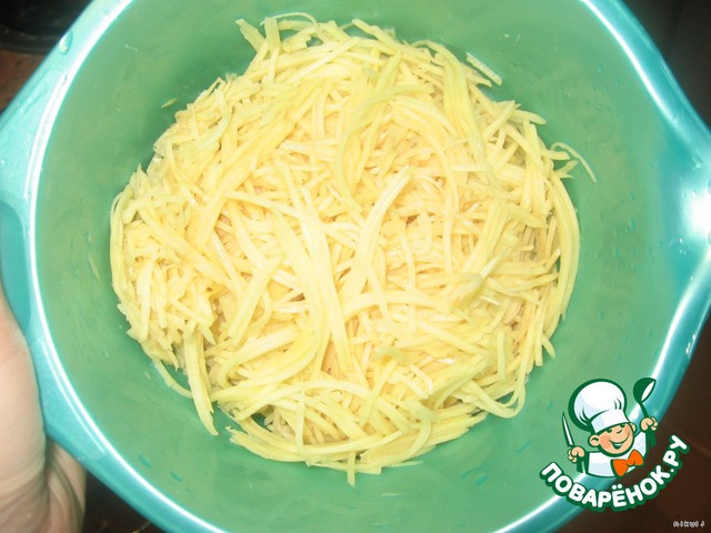Картофель почистить, натереть на корейскую (или крупную) терку.
