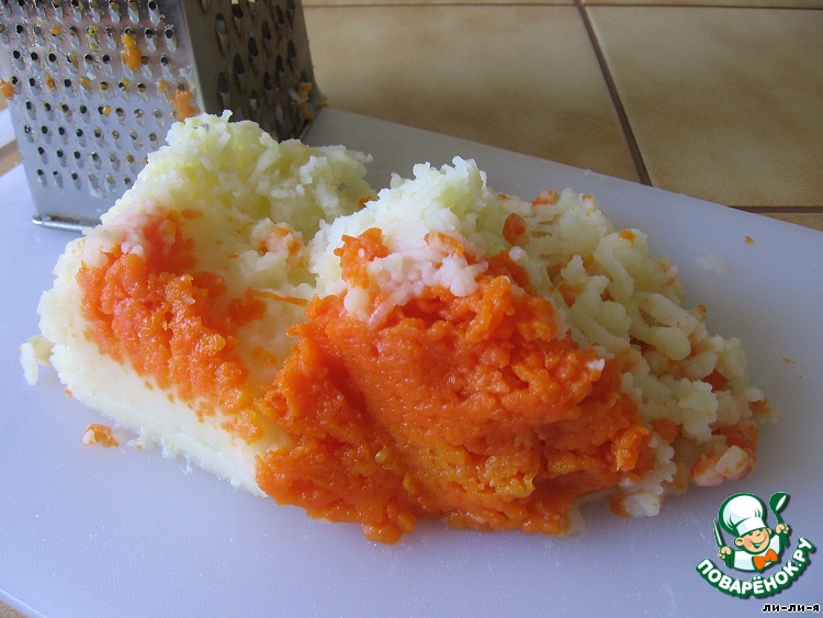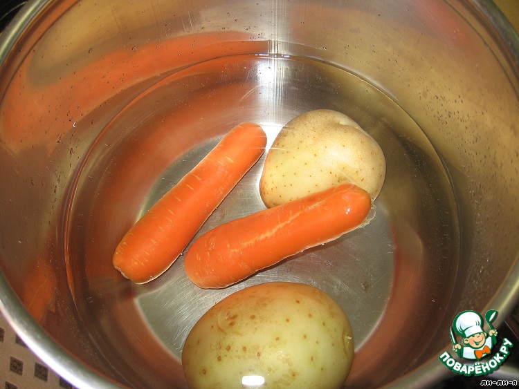 Отварить "в мундире" картофель и морковь.