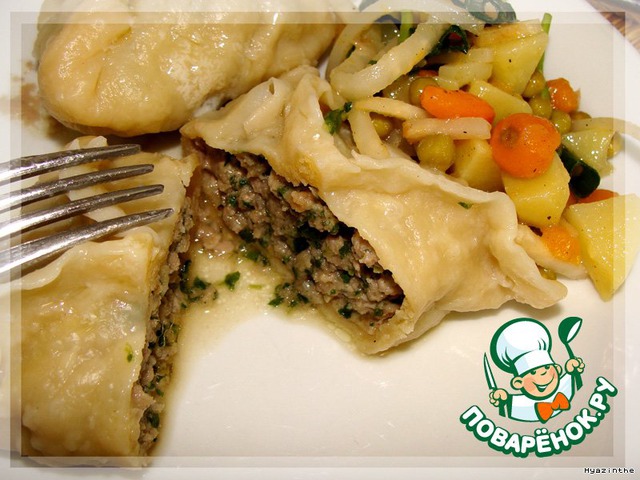 | Ни разу не встречала такой способ защипывания вареников, но так делала моя бабушка. Она говорила, что это немецкие вареники... Конечно, начинка может быть и привычно сладкой, а у меня мясная со шпинатом. |