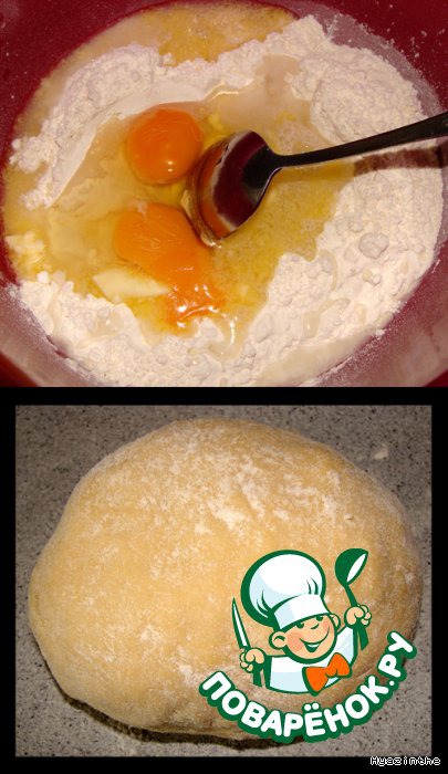 Для теста - смешать муку, яйца, масло, воду, соль. Для меня муки было достаточно, кому-то понадобится больше или меньше. Тесто эластичное, не липнет к рукам.