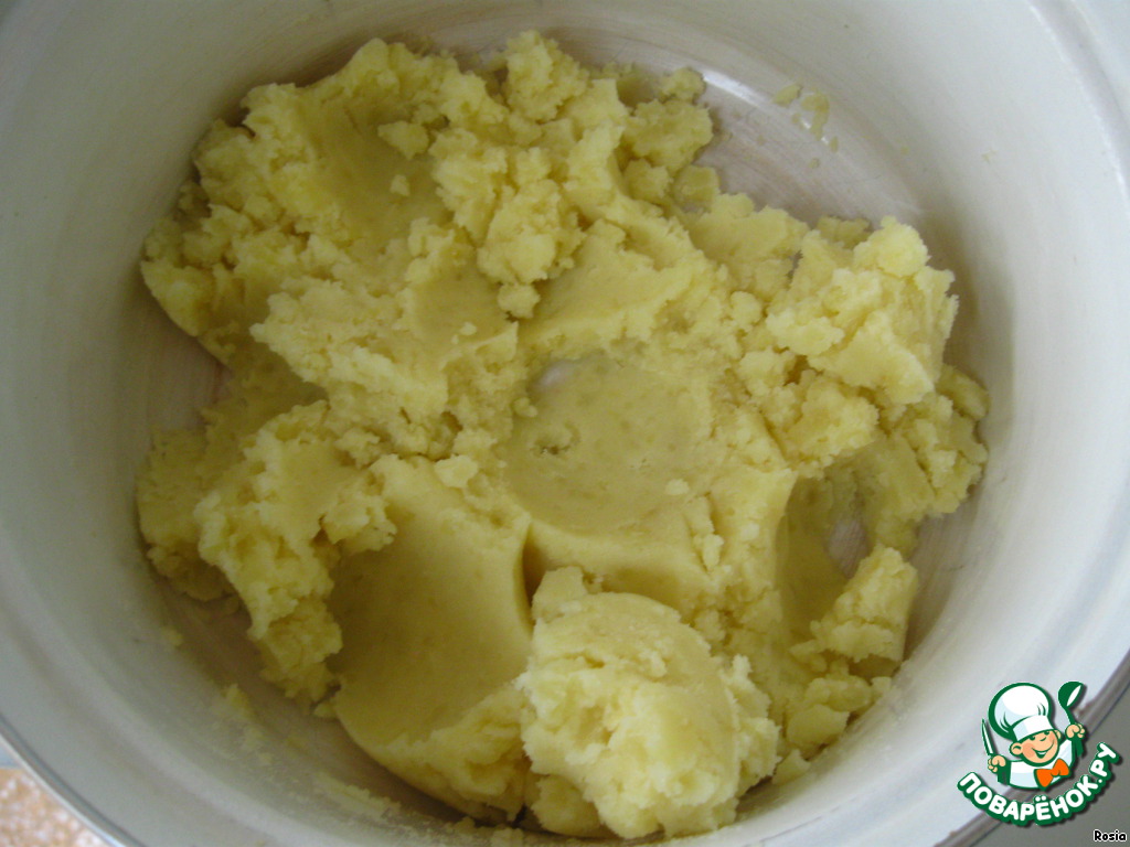 Картофель почистить, сварить, полностью слить воду, сделать пюре.