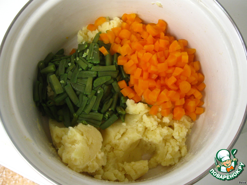 Картофель + морковь + фасоль + соль + перец. Делаем пюре миксером.