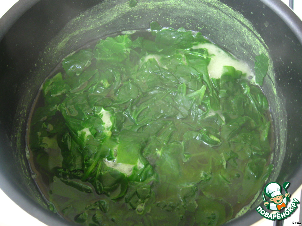 Шпинат помыть, измельчить руками, залить 200 мл воды. Кипятить 5 мин.