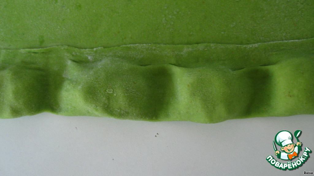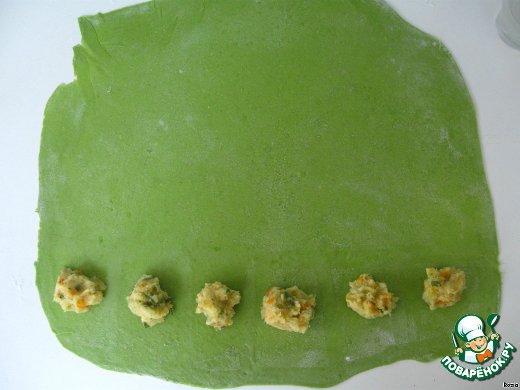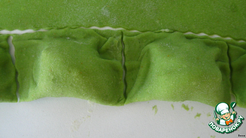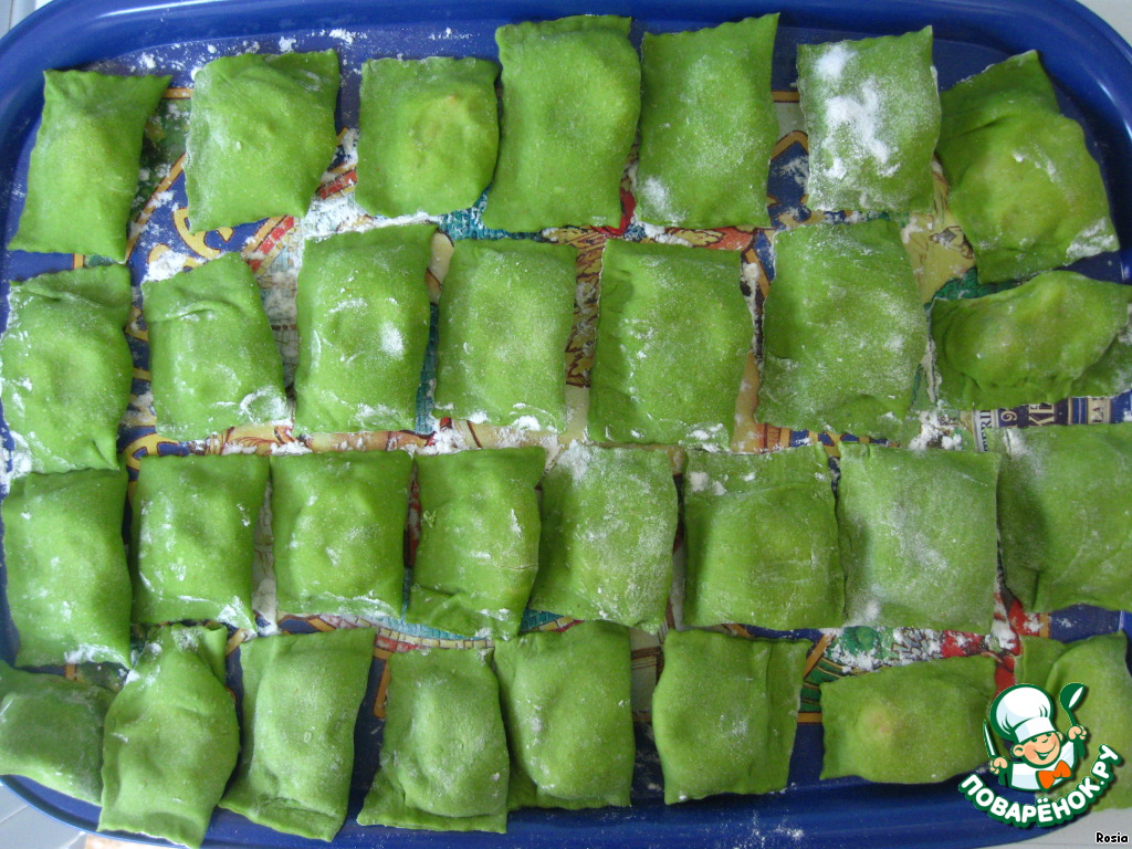 | Равиоли из шпинатного теста с начинкой из картофеля, моркови и стручковой фасоли ))) Их обожает моя дочурка ))) Угощайтесь!!! Из этого теста можно делать лазанью, вареники, лаваш, пельмени ))) |