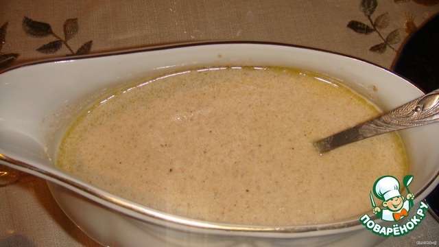 Измельчите орехи, добавьте немного соли и залейте горячим бульоном, добавьте чеснок, пропущенный через пресс