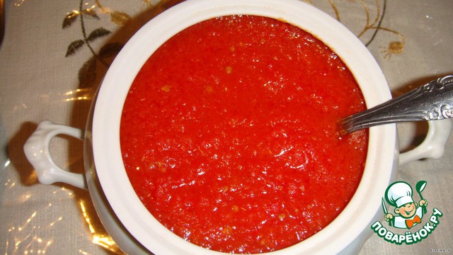 Готовим соус: помидоры перетереть и обжарить на масле, приготовить томат,