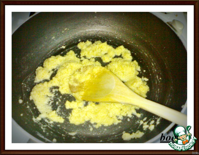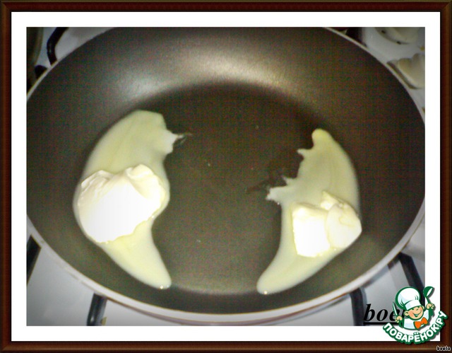 Приготовить заливку: на небольшой сковороде растопить 2 ст.л. сливочного масла,