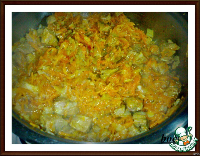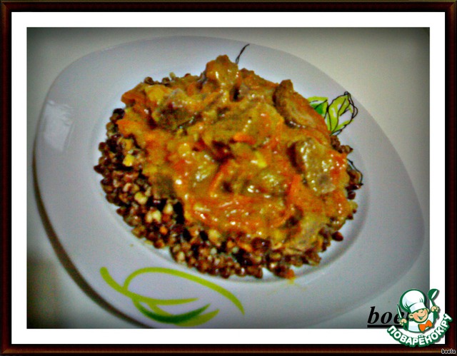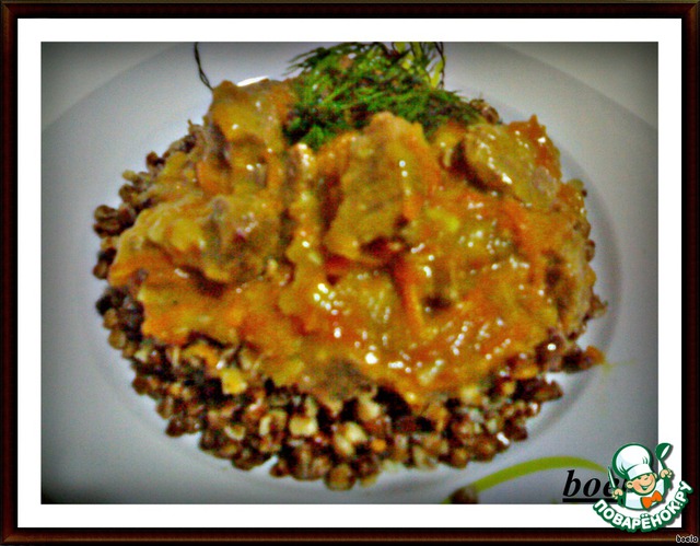 Сегодня у меня с гречкой. А может быть все что угодно: макароны, пюре, рис и все что придет в голову. Можно ее добавлять в любые гарниры. Можно приготовить побольше и заморозить порциями (часто так делаю). А потом, когда нет времени нa готовку, просто разогревать и...опять же куда угодно!!!
