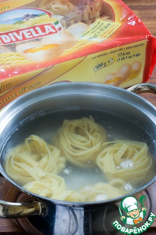 Соус готовится очень быстро, поэтому начинаем с отваривания пасты. Для этого рецепта я взяла вот такие гнезда от Divella.