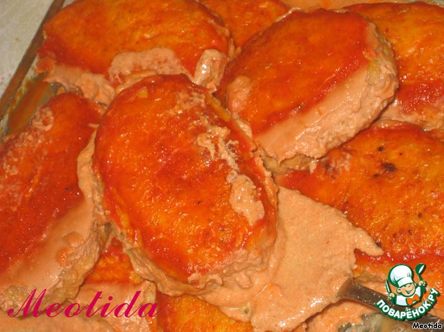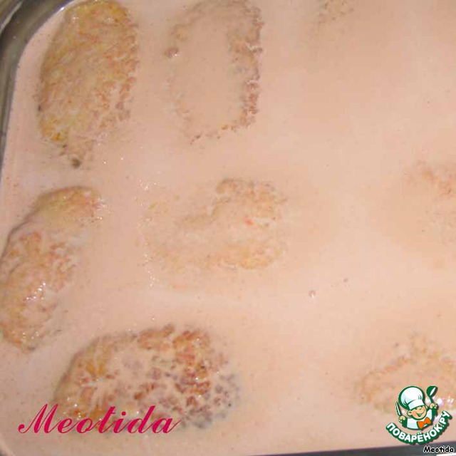 котлетки выкладываем в форму, заливаем соусом и отправляем в разогретую до 200С духовку на 35-40 минут